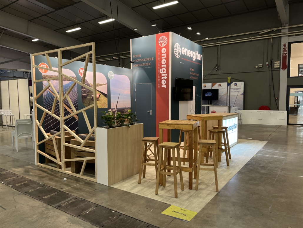 - Nous travaillons ensuite avec notre bureau d’études 3D pour vous présenter un projet de stand réaliste mettant en scène les différents espaces du stand.